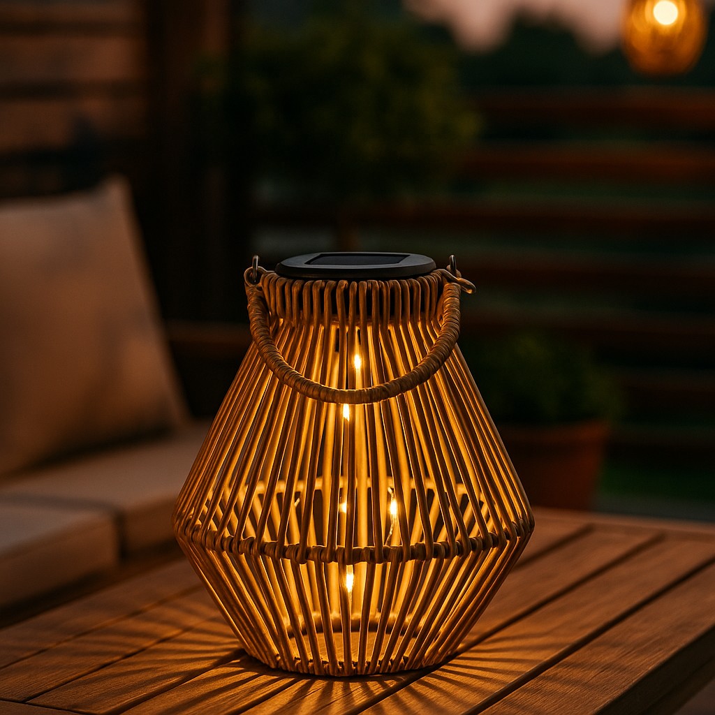 Das Solar Windlicht Korb groß bringt stimmungsvolles Licht in deinen Garten und verleiht deiner Terrasse eine einladende Atmosphäre – umweltfreundlich und modern.