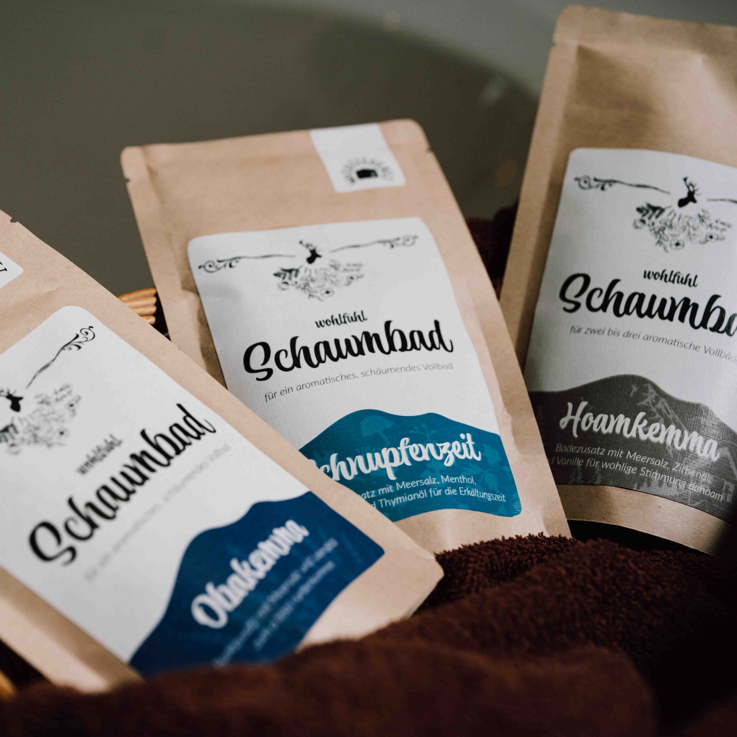 Einfach durchatmen: Unser Wohlfühl – Schaumbad – Schnupfenzeit schenkt dir mit Thymian, Menthol, Rosmarin und natürlichen Tensiden ein entspannendes Schaumerlebnis. Sanft zur Haut, stark im Duft – perfekt für dein Wald-Wellness-Ritual!