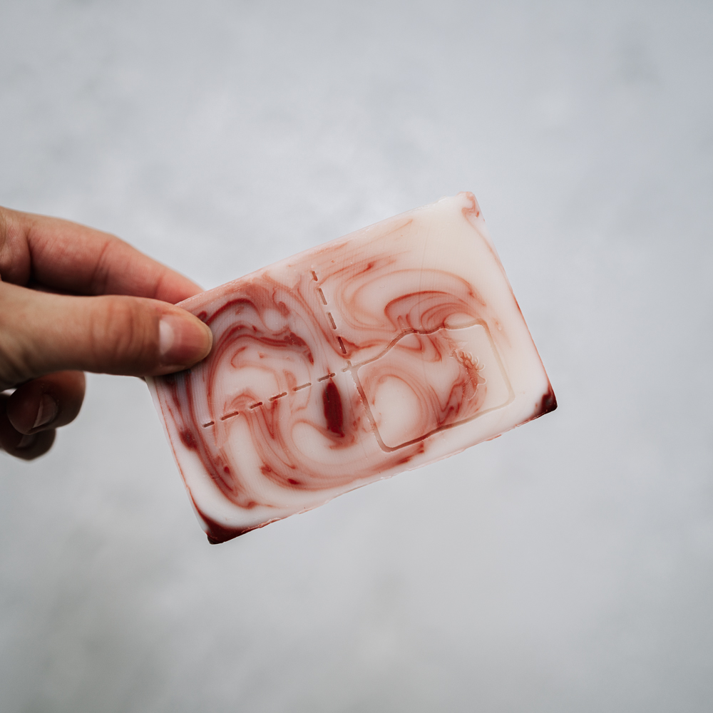 Tauche ein in den Rosentraum – eine handgesiedete Naturseife, die Haut und Sinne gleichermaßen verwöhnt. Die Kombination aus sinnlichem Rosenduft und zarter Marmoroptik macht sie zum kleinen Luxusmoment im Alltag.